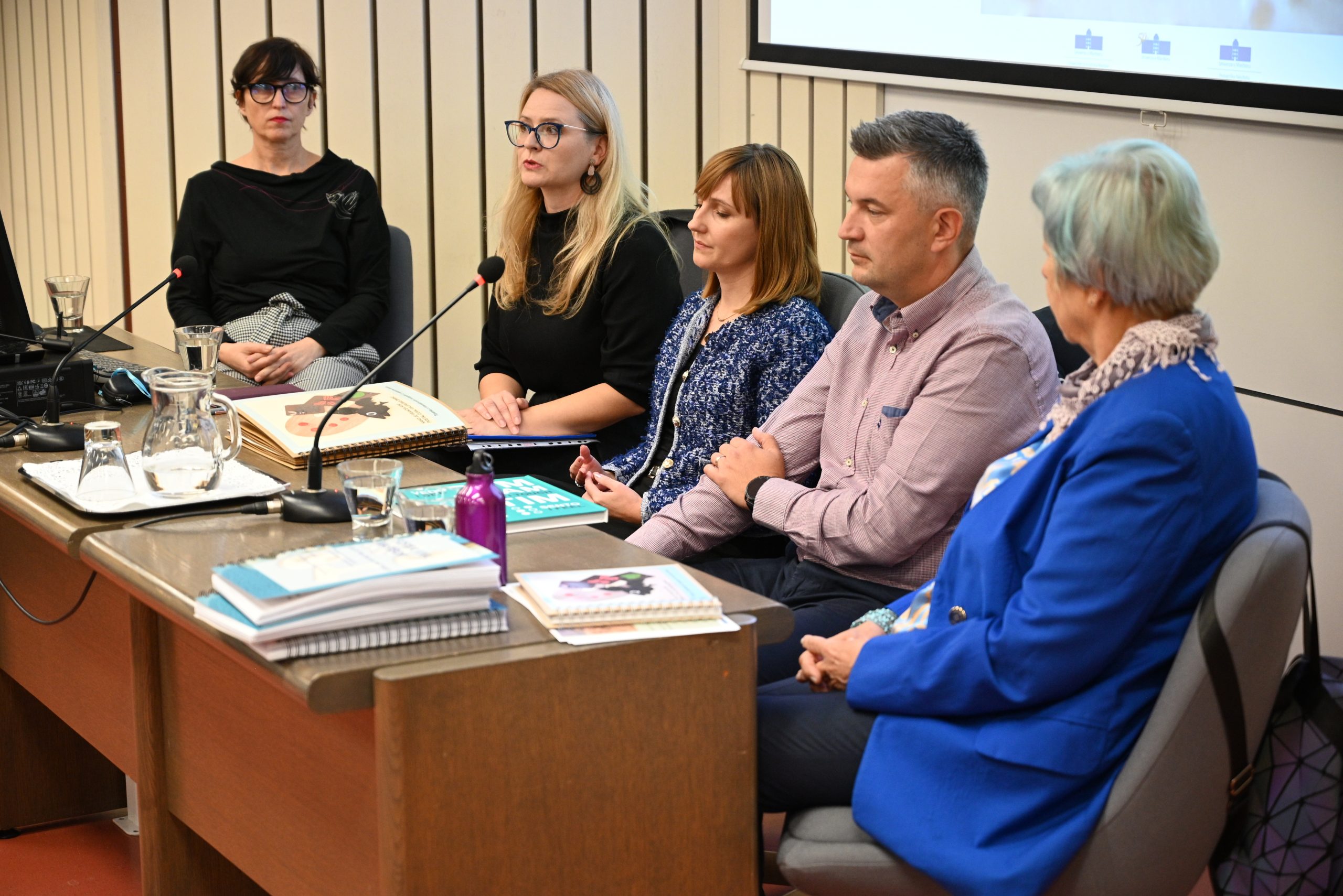 Na okrogli mizi so gostje: Petra Čeh, direktorica Koroške galerije likovnih umetnosti, David Kožuh, muzejski svetovalec iz Goriškega muzeja, izr. prof. dr. Aksinja Kermauner, specialna pedagoginja in red. prof. dr. Jerneja Herzog delili mnenja o pomembnosti razvijanja programov za slepe in slabovidne v muzejih in izobraževalnih inštitucijah. Diskusiji sta se pridružila tudi čana MDSS Maribor, ga. Darinka Lozinšek in g. Valter Čučković.