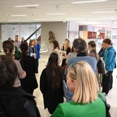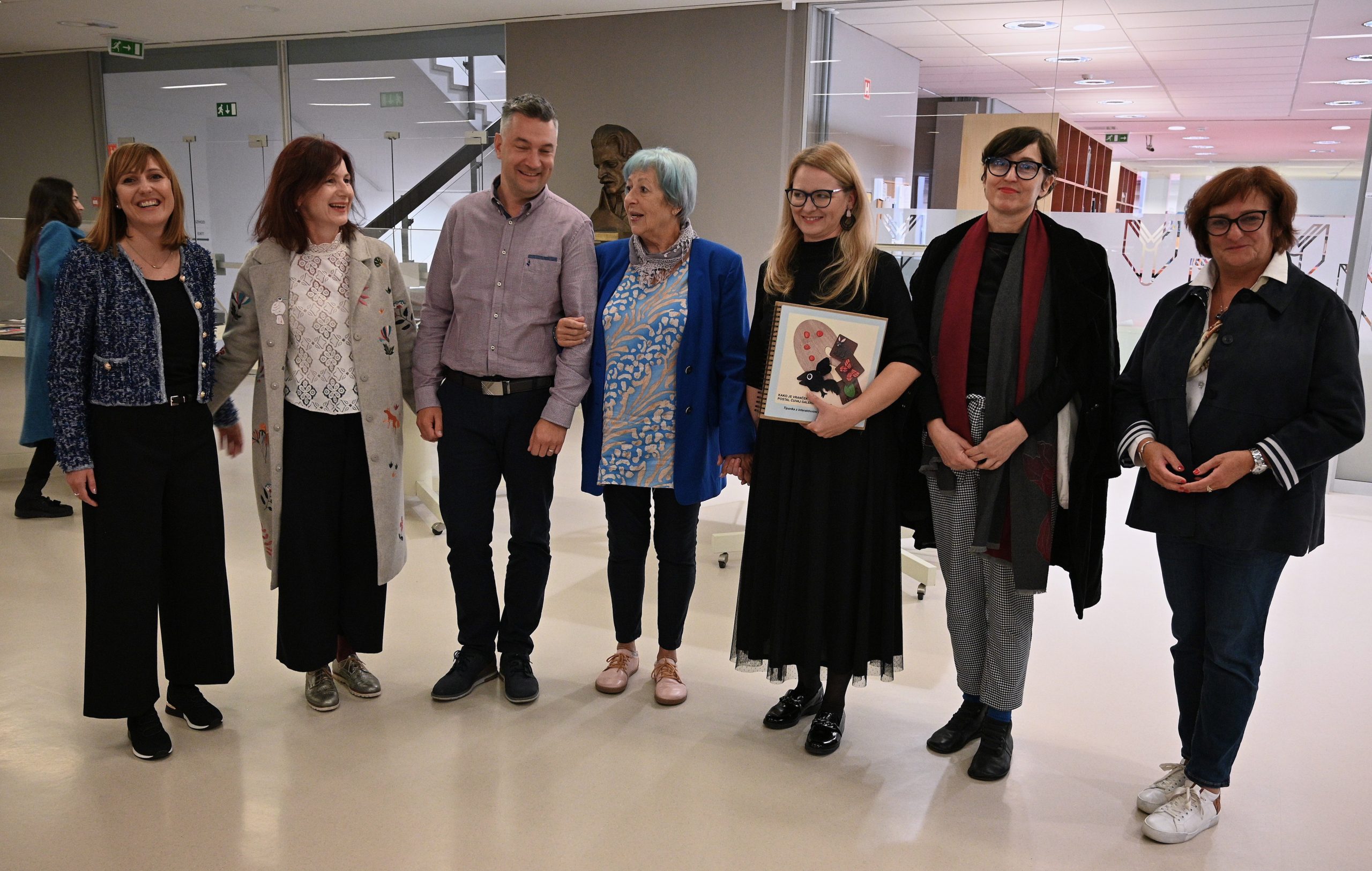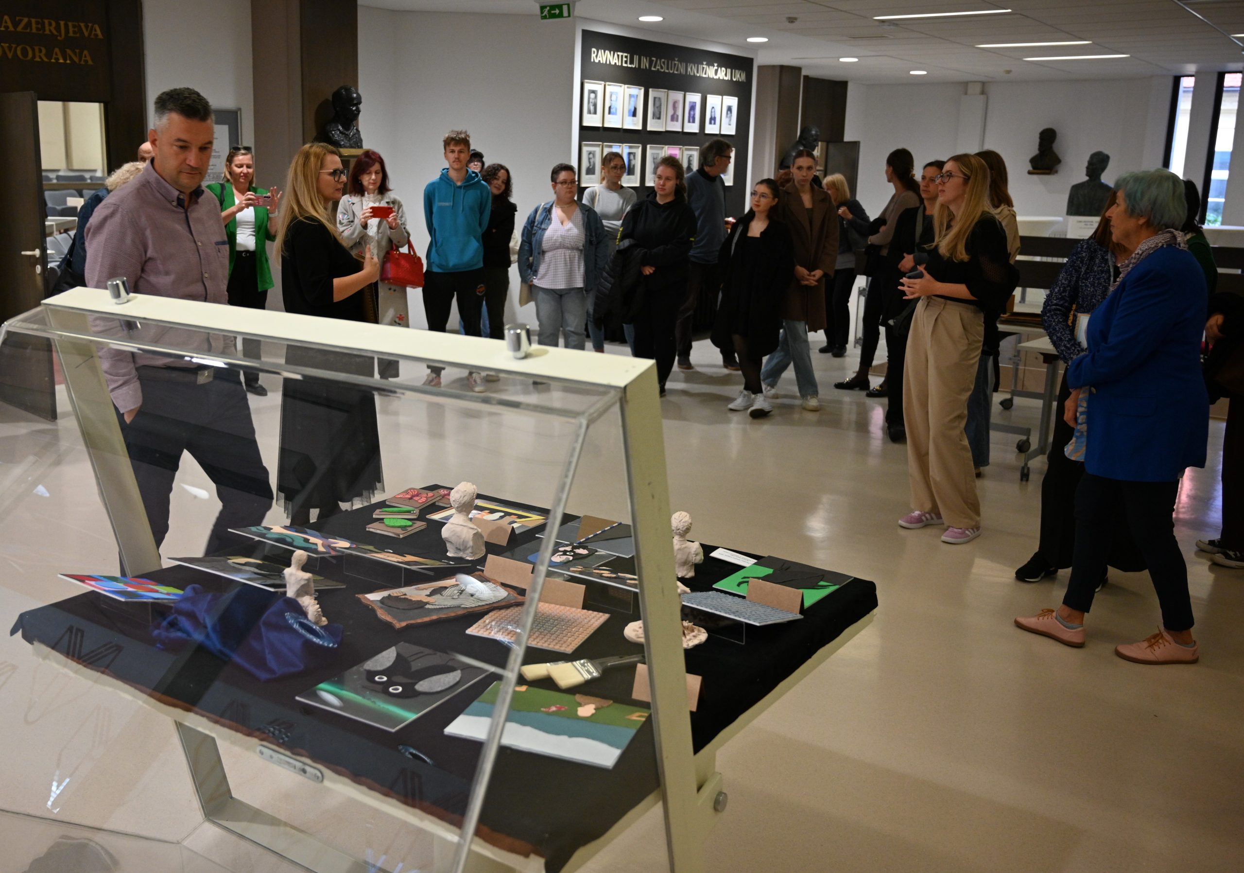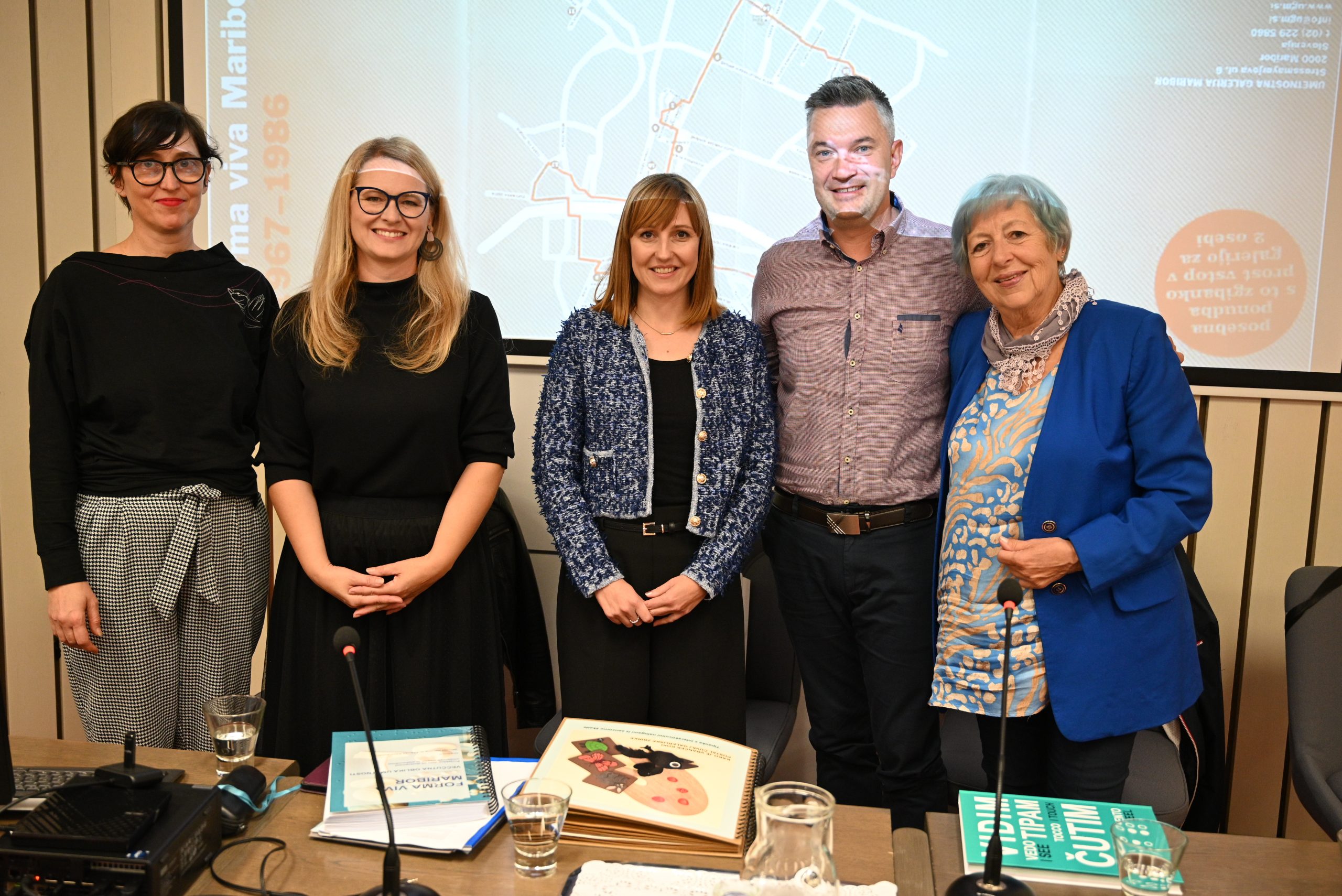 Nato je sledila promocija strokovne monografije Forma viva Maribor: Veččutna oblika umetnosti in pa odprtje razstave taktilnega materiala. Taktilni material, ki ga lahko vidite na razstavi je nastajal več let na Oddelku za likovno umetnost PeF pod mentorstvom red. prof. dr. Jerneje Herzog in izr. prof. dr. Aksinje Kermauner. Koroški galeriji likovnih umetnosti pa smo predali tudi tipanke po slikanici Kako je vranček Koki postal čuvaj galerijske zbirke in senzorno škatlo s tipnimi slikami in materiali, ki so nastali v lanskem študijskem letu in so ga pripravili študenti pri predmetu Likovnopedagoško delo z otroki različnih skupin pod okriljem omenjenih mentoric.