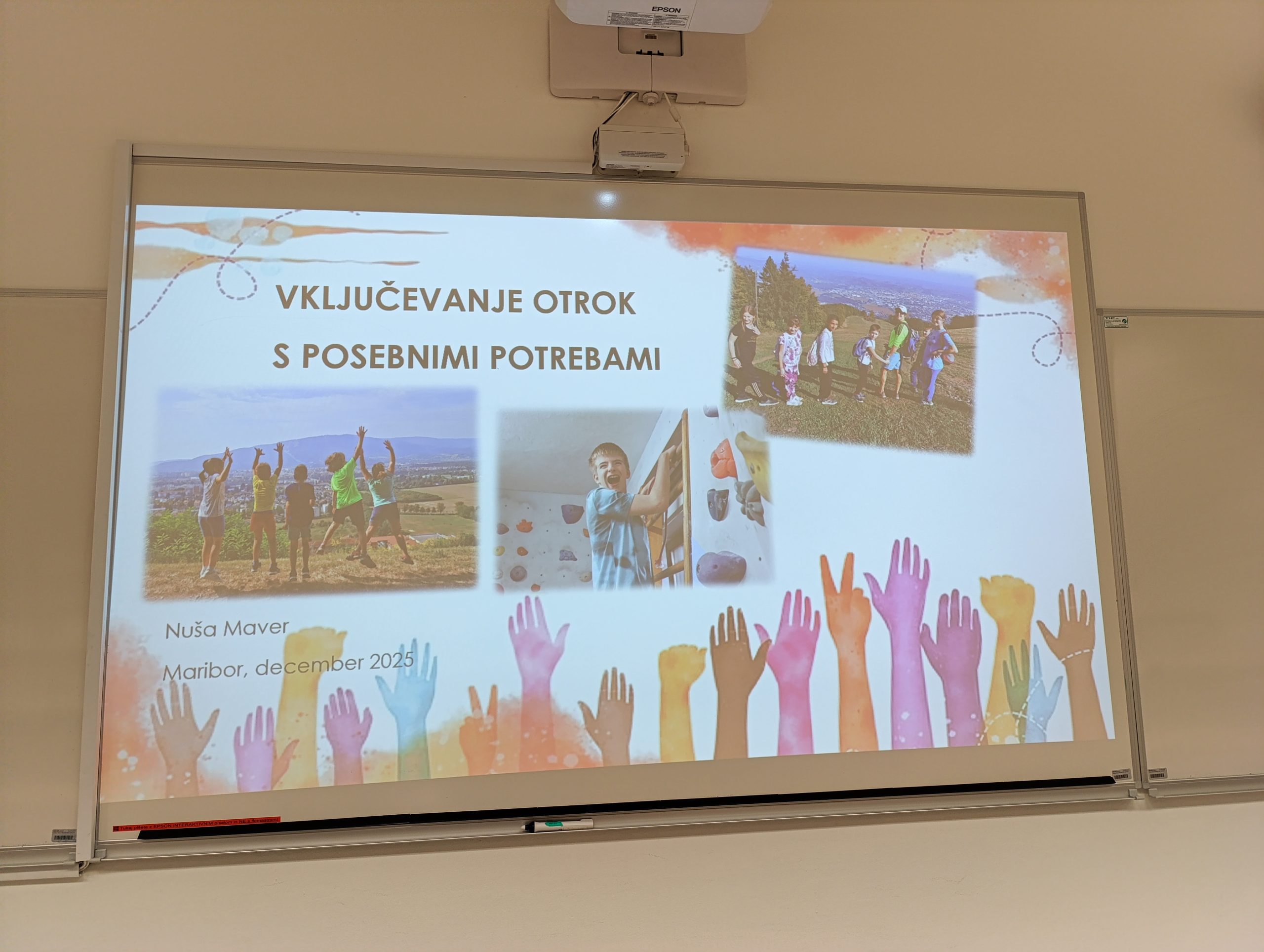 Študentom je skozi strokovno in izkustveno naravnano predavanje predstavila konkretne in praktične možnosti vključevanja otrok s posebnimi potrebami v športne dejavnosti, s posebnim poudarkom na inkluzivni športni vadbi ter športnem plezanju kot učinkovitem orodju za celostni razvoj otrok.