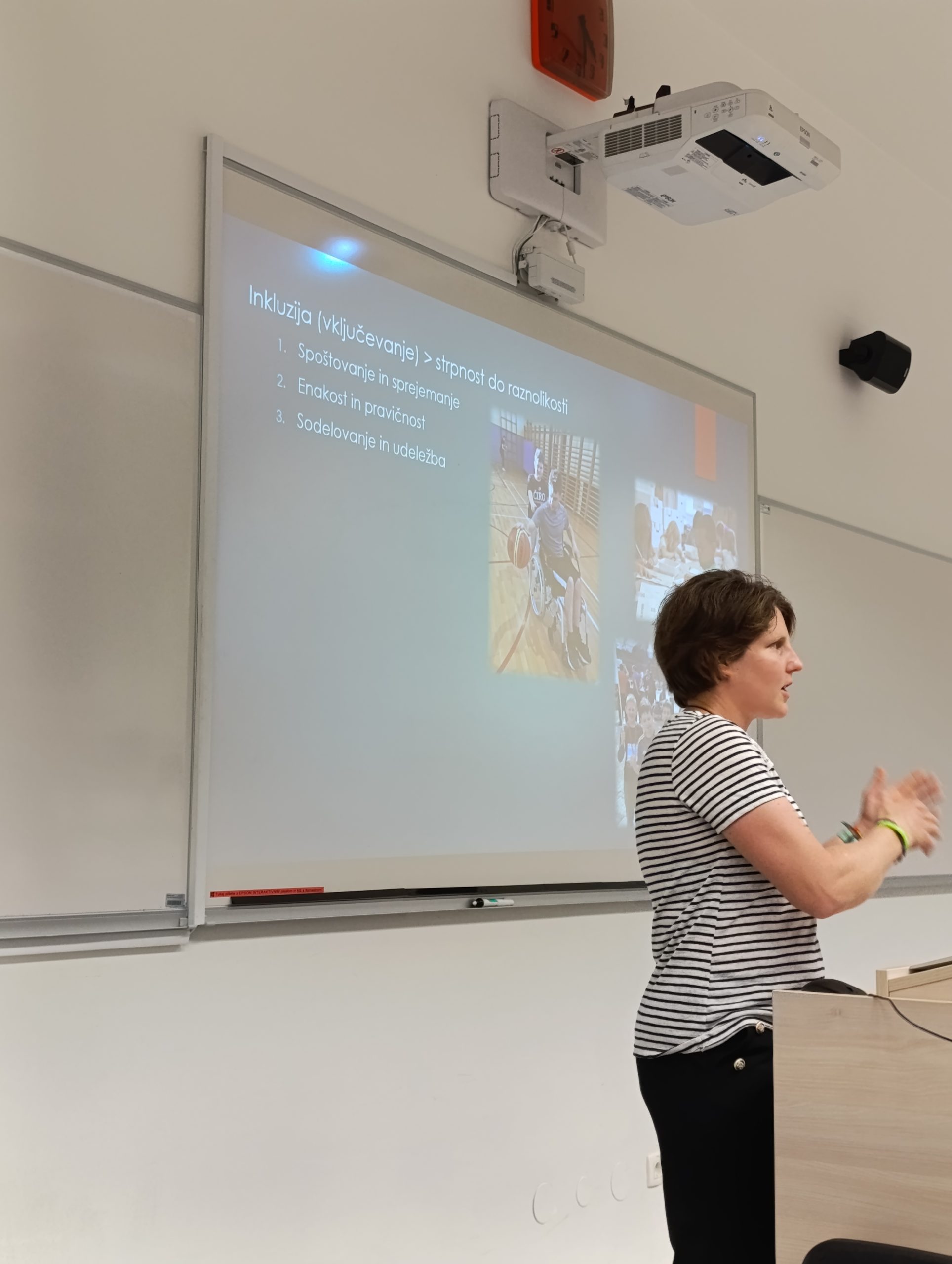Svoje bogate izkušnje, pridobljene pri delu z različnimi skupinami otrok s posebnimi potrebami ter skozi izobraževanja s področja terapevtskega in inkluzivnega športa, je delila na navdihujoč in študentom dostopen način.